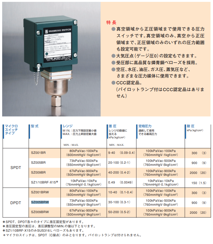 Công tắc áp suất SZ001BR